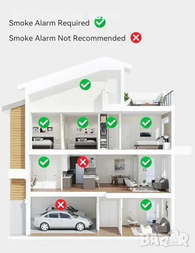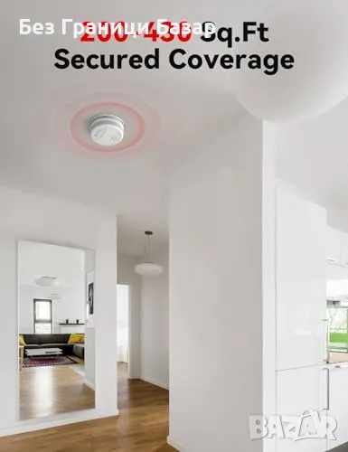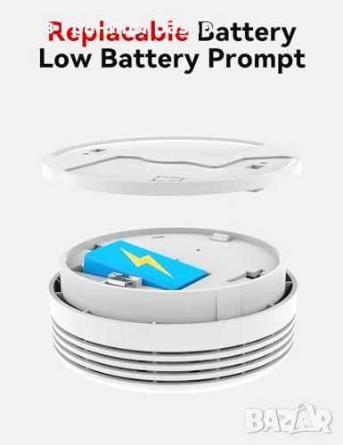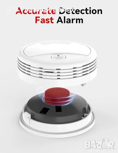 Реагира мигновено на дим с аларма над 85 dB и мигащи светодиоди.