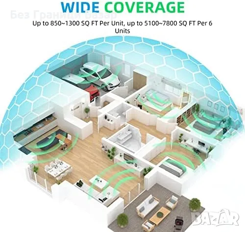 Обхват до 115 м² на уред - препоръчва се по един уред на стая за максимална ефективност.
