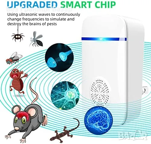 Нови 6 броя Ултразвуков репелент за мишки, паяци, хлебарки - безопасен за хора и домашни любимци