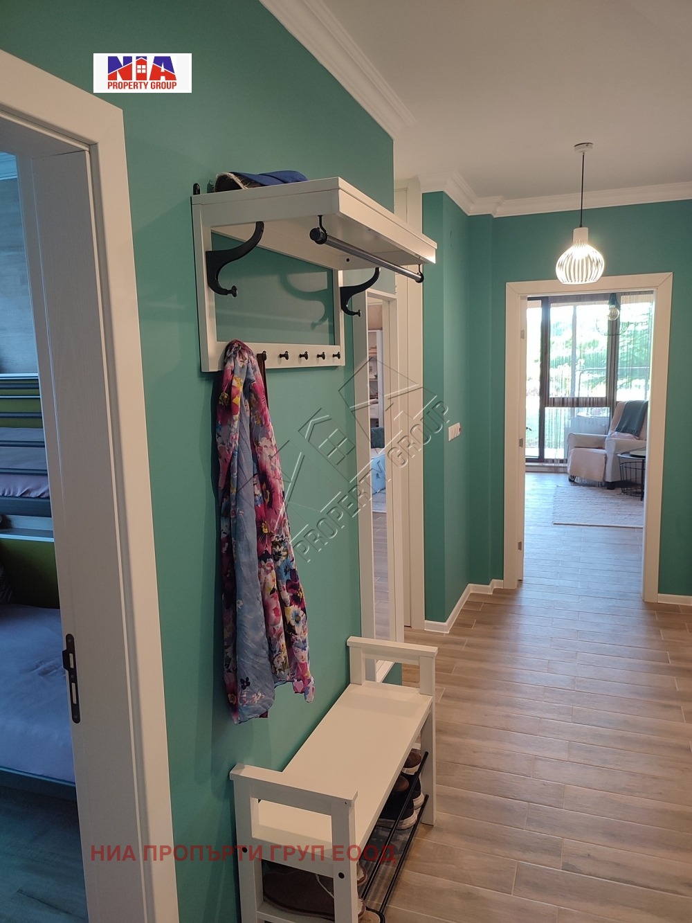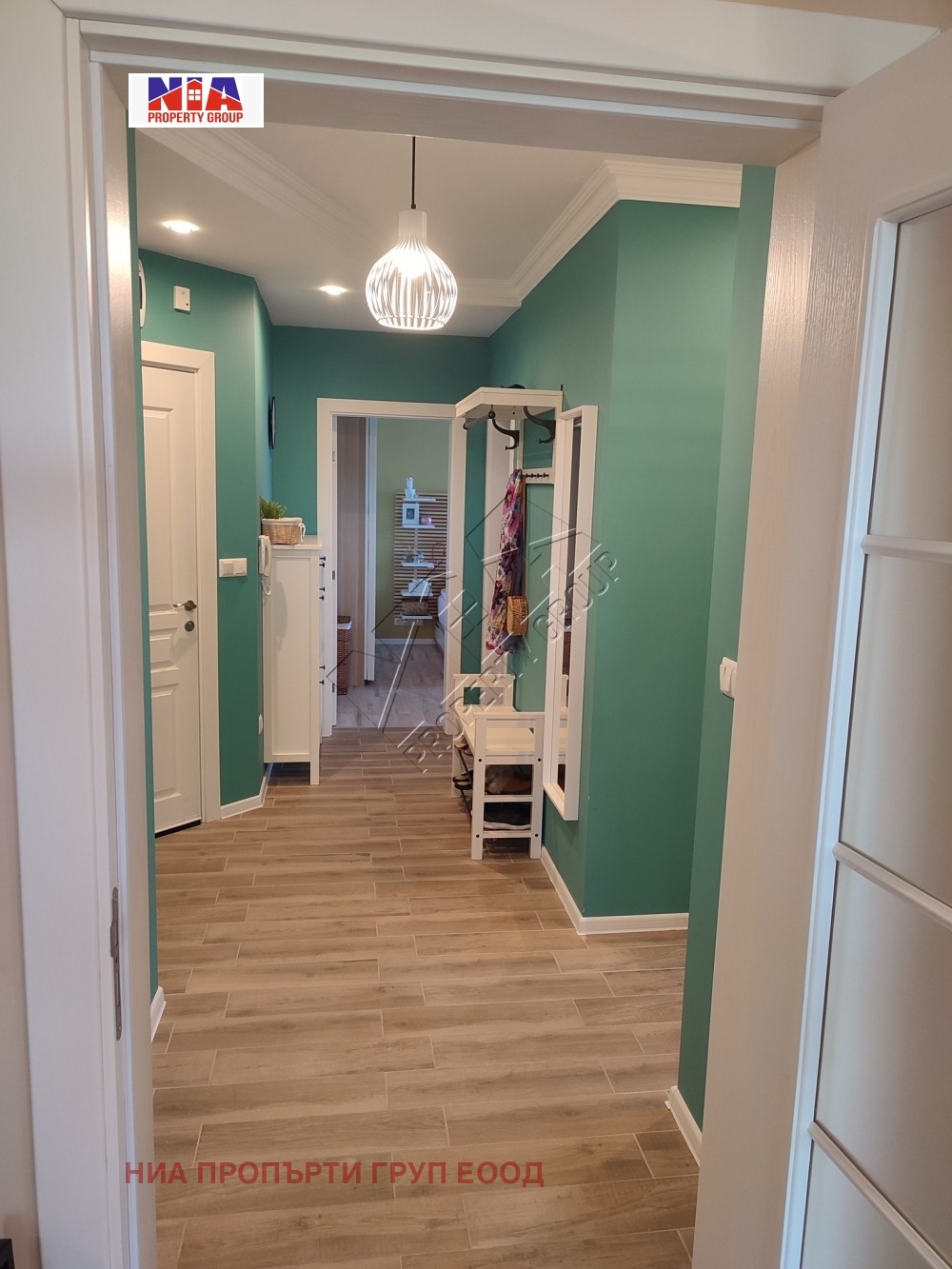 Апартаментът е с площ 96,25 м2, разположен е на първи етаж, обзаведен луксозно и се състои от: