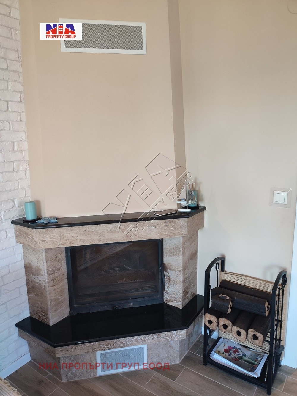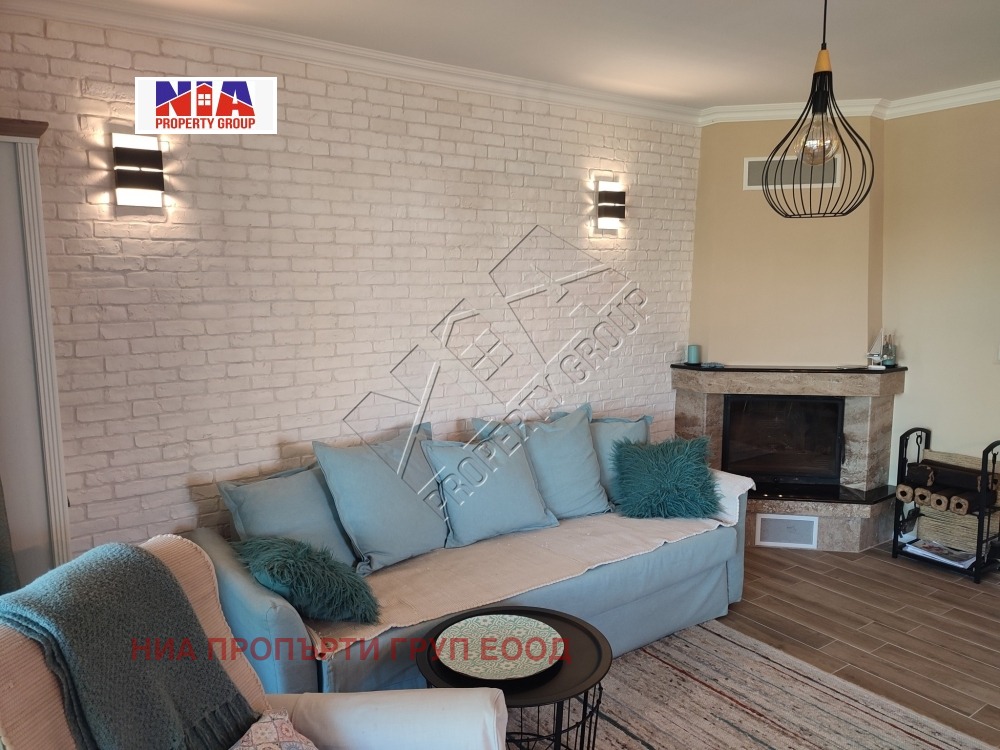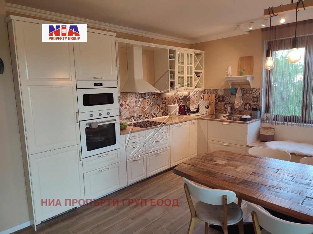 - Голяма кухня с трапезария и холна част с мека мебел. В хола има разположена действаща камина, която отоплява чрез въздуховоди и останалите стаи. Отделно има и модерни електрически конвектори за отопление, както и климатици от най-висок клас.