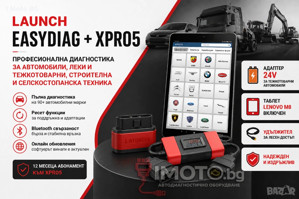 Фирмата Launch е добре позната по цял свят със своето съотношение между цена и качество на предлаганите продукти. Софтуерните инженери на компанията постоянно обновяват софтуера, за да поддържат и най-новите модели автомобили. Не се подлъгвайте по обяви, които твърдят, че предлагат меню на български – това обикновено засяга само началното меню, а не базата данни с марките. Не сравнявайте нашите продукти с тези на други търговци, които често копират нашите обяви и предлагат продукти с различна или недостатъчна функционалност. Липсата на поддръжка от тези търговци може да доведе до неудобства.