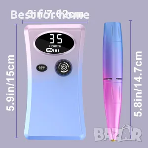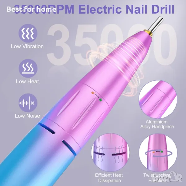 Преносимата професионална бормашина за нокти е изработена от специален материал, алуминиева сплав. Преносим и лек дизайн, можете да пилите ноктите си по всяко време и навсякъде.