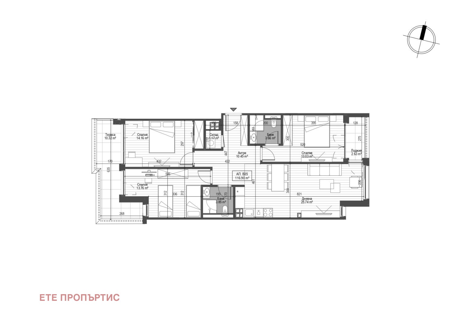 Може да избирате от ателиета, двустайни, тристайни и четиристайни до многостайни апартаменти и мезонети с прилежащи тераси с озеленяване и складови помещения.