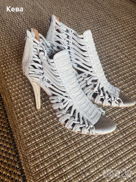 Дамски сандали,естествен набук,ток 11 см,вътрешна стелка 25см,без забележки.
