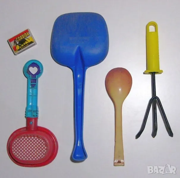 Лопатки 2бр.; Сито Сеялка 1бр.; Тризъбен Култиватор Разрохвател за почва 1бр.; Тегло: ~160 грама; • ОПИСАНИЕ: