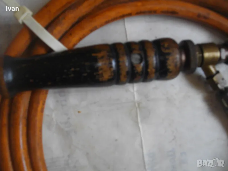 Цена на газова горелка бронзова с дървено покритие 260 мм - с маркуч 3 м и редуцир вентил клапан налягане Leber Industre - професионална - немска старо качество - отлично състояние - цена 199 лв.