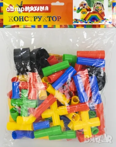 Конструктор MAX, 500 г, Тръбички и колела в различни цветове. Комплектът дава възможност за изграждане на обемни фигури, което развива въображението и сръчността. Подходящ за деца от детска градина, предучилищна и началните класове на училищно образование. Материал - PVC. Тегло за комплект - 500 г. Подходящ за деца над 3 години