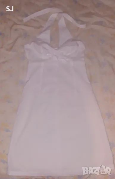 Дамска бяла лятна рокля, с гол гръб, размер XS. С цип и връзки през врата. На бюста също има връзки за регулиране на деколтето.