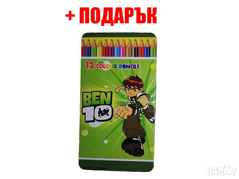 ***ПОДАРЪК: Цветни моливи BEN 10 - 12 цвята, метална кутия.