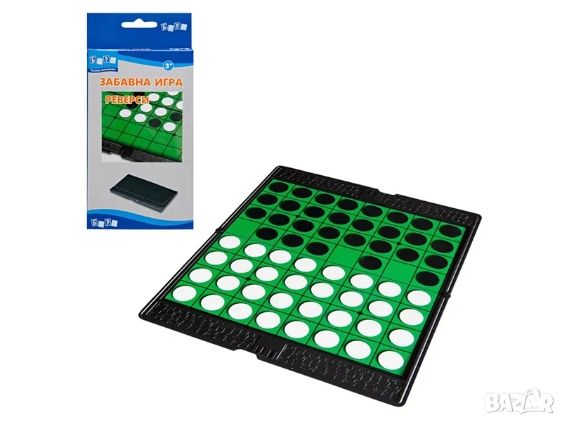 Класическата семейна игра "Реверси" е с метално игрално поле и магнитни пулове, които я правят изключително удобна при пътувания и игра на открито. Играта развива умение за концентрация.