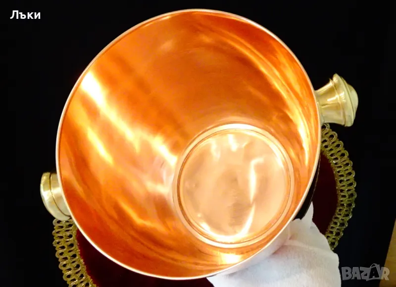 Старинна френска шампаниера,майсторска ръчна изработка от високо качествена чиста червена мед с