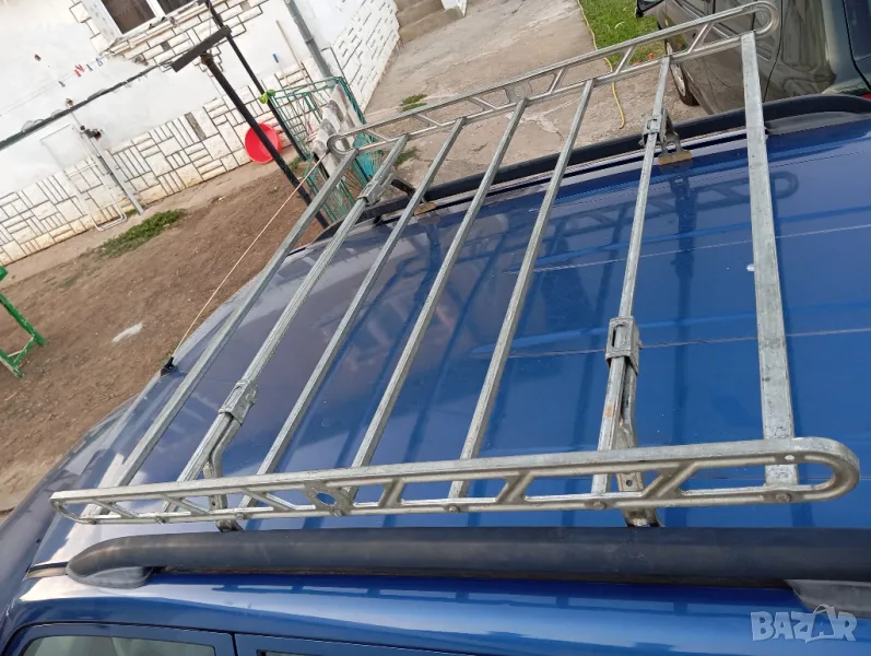 Багажник за автомобил. Захвата на лапите могат да се регулират според тавана на автомобила. Дължината на Багажника е 113 см. Широчина 108 см. При интерес пишете или се обадете на посочения теле номер.