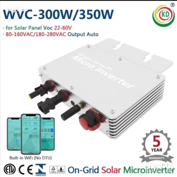 KaiDeng WVC-300W 350Watt PV Grid Tie Micro Inverter WVC серия DC22V-60V до AC100V-230V 50/60Hz соларен MPPT микрокомпютър