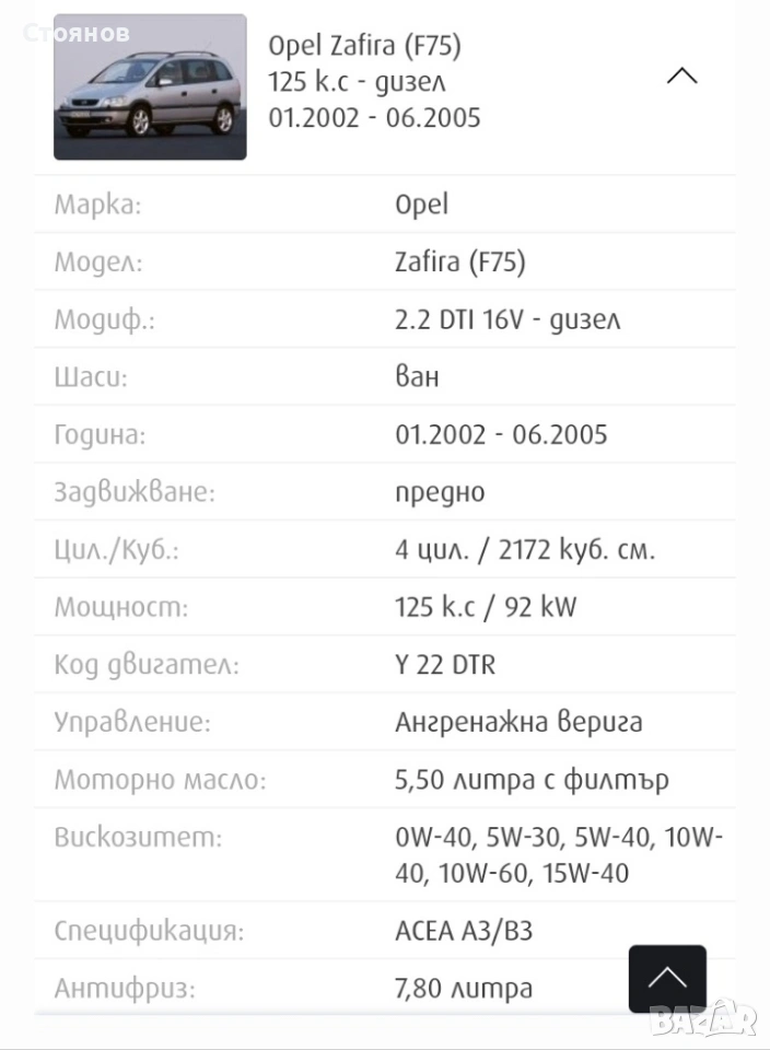 Опел ZAFIRA 2.2 Dizel. → Обява 47045907