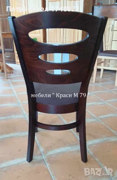 Столът е изработен от масивна букова дървесина в цвят с тапицирана седалка. Наличен!
