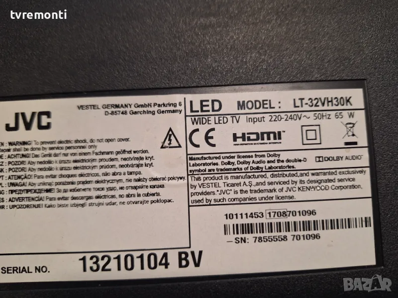 POWER BOARD ,17IPS62, for 32 inc DISPLAY VES315WNDS-2D-N14 for JVC LT-32VH30K борда е гарантирано работещ Демонтиран от телевизор JVC модел LT-32VH30K със счупен дисплей VES315WNDS-2D-N14 тествана от нашия техник Ремонт на всички марки съвременни телевизори