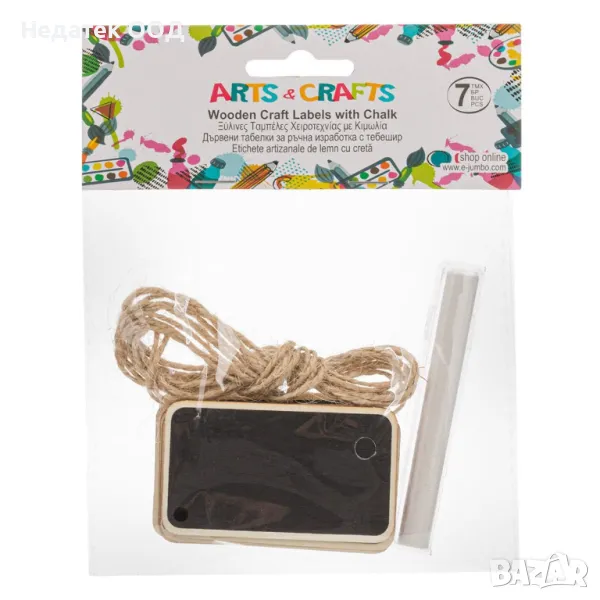 Занаятчийски комплект със знаци от дървена дъска с бял тебешир, за да напишете вашето съобщение, желания или име. Пакетът съдържа и въже, за да ги закачите, ако желаете.