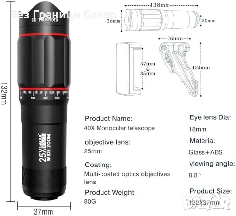 телескоп с увеличение 80X100