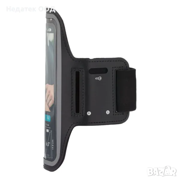 Kалъф за телефон, Спортен, С лента за ръка, Черен, 6,5"