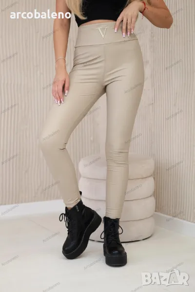 Дамски панталон изолиран с еко кожа с буква V, 3цвята