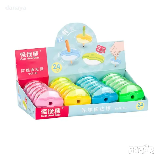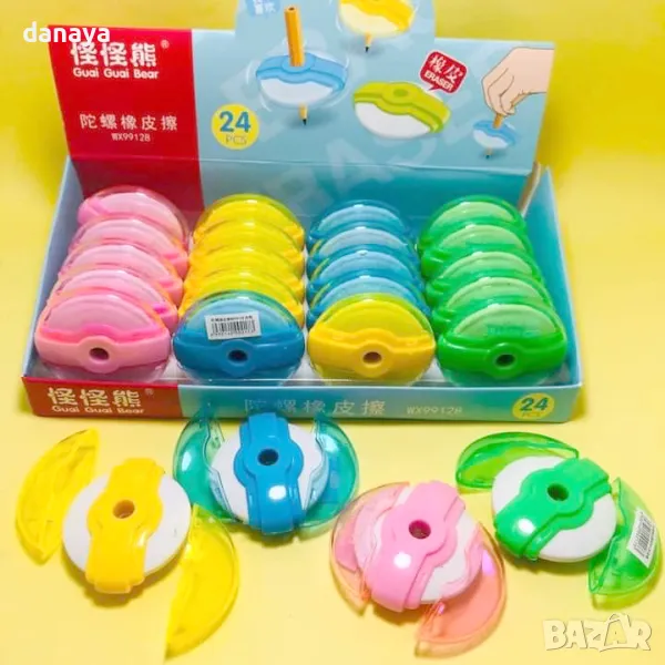 Спинер. Представяме ви ученическата гумичка Спинер – уникален и забавен аксесоар за всеки ученик! Тази гумичка комбинира функционалността на класическа гумичка с модерния дизайн на спинер. Със своята кръгла форма и дупка в центъра, тя позволява да поставите молив и да го използвате като дръжка, докато завъртате гумичката за забавление или концентрация. Перфектна за изтриване на грешки и едновременно с това за релаксация по време на учене. Добавете нотка игривост към ученическите си пособия с гумичката Спинер – идеалното съчетание на полезно и забавно!