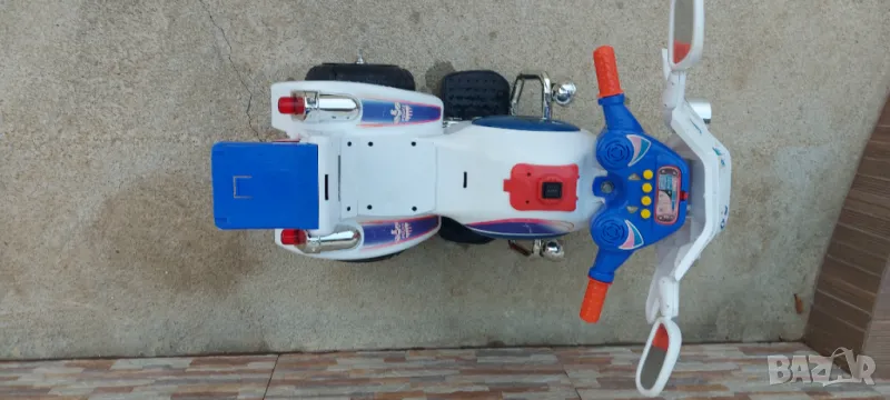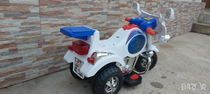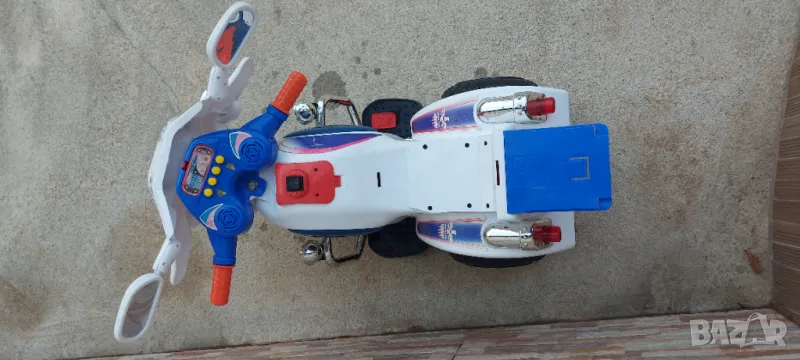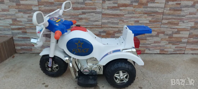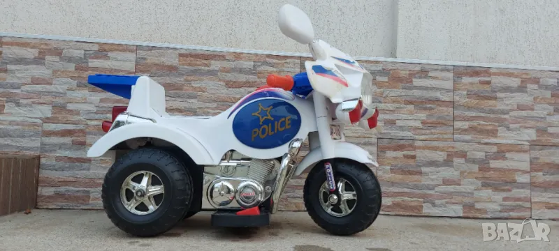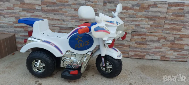 Продавам акомулаторно полицейско моторче за дете . Моторчето е без акомулатор ( трябва да му купите ) и без зарядно 12 волта - продават се навсякъде по електрическите магазини за осветителни тела. Цената на двете липсващи неща е около 25 лв.