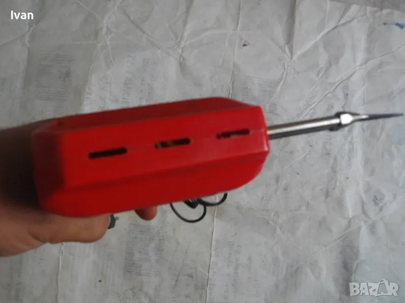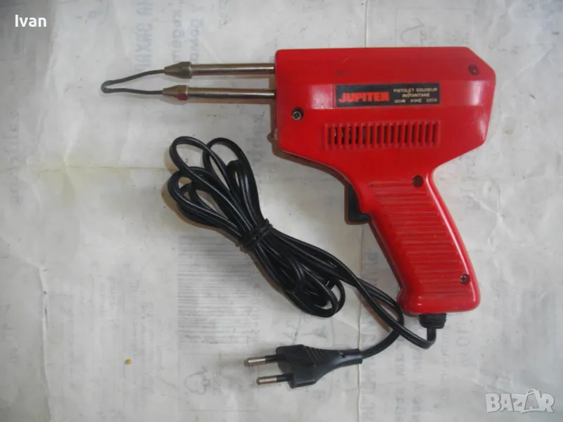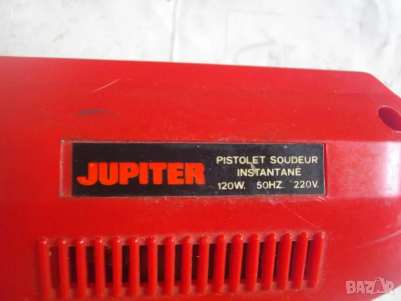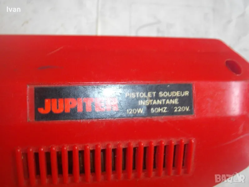 ОПИСАНИЕ на френски ел.поялник - 159 лв. Старо качество. Производство някъде края на 80-те години на 20-ти век. Много запазен външен вид и отлично техническо/работно състояние. Марка - JUPITER. 220 волта, 120 вата мощност. Индукция. Лампа. Оригинален мек захранващ кабел и оригинален щепсел.1 бр. човка сменяема /малко ползвана/.