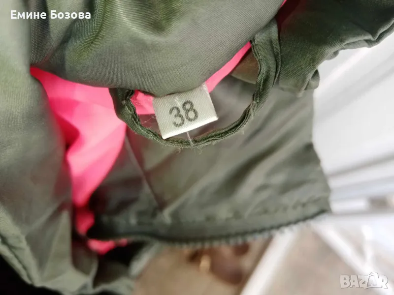 Дамско яке тънко „петролено зелено“ с розова подплата №38 с цип и два джоба,късо . Цена 19лв