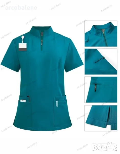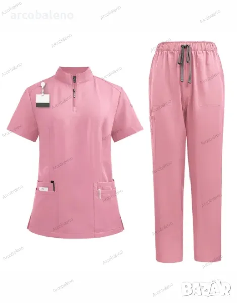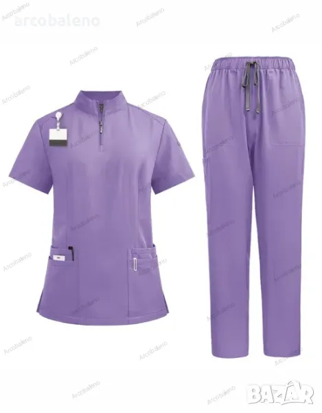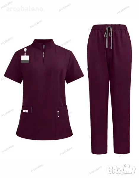 Дамски професионален медицински комплект от две части в плътен цвят, 9цвята