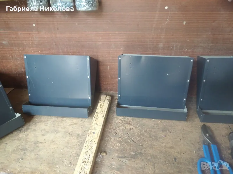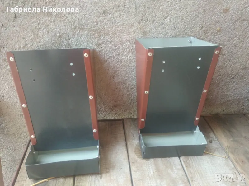 метални бункери хранилки. Различни размери и вместимост. от ширина 15 см вместимост 0,7 кг до ширина 30 см вместимост 4кг. Цена от 11 лв до 16 лв.