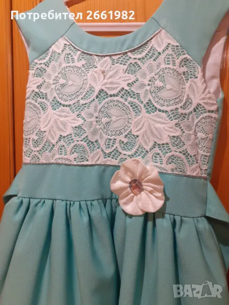 Тюркоазенозелена официална рокля с бяла дантела, снимка 1 - Детски рокли и поли - 47056614 Тюркоазенозелена официална рокля с бяла дантела, снимка 2 - Детски рокли и поли - 47056614 Тюркоазенозелена официална рокля с бяла дантела, снимка 3 - Детски рокли и поли - 47056614 Тюркоазенозелена официална рокля с бяла дантела, снимка 4 - Детски рокли и поли - 47056614 Тюркоазенозелена официална рокля с бяла дантела, снимка 5 - Детски рокли и поли - 47056614 1/5