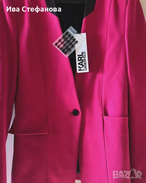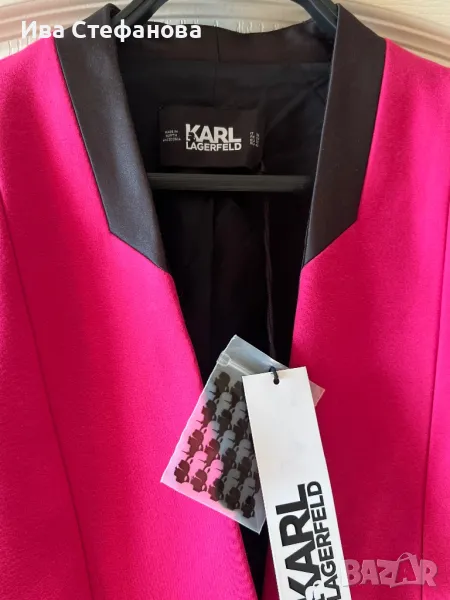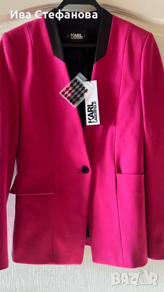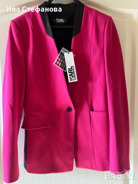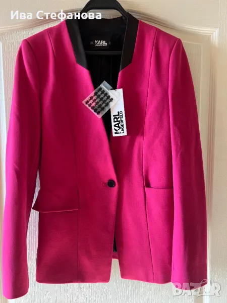 Нов с етикет розов елегантен блейзер сако Karl Lagerfeld Карл Лагерфелд . Размер S дължина 70 см , бюст 90 см плюс минус 5 см . Разгледайте и другите ми обяви .
