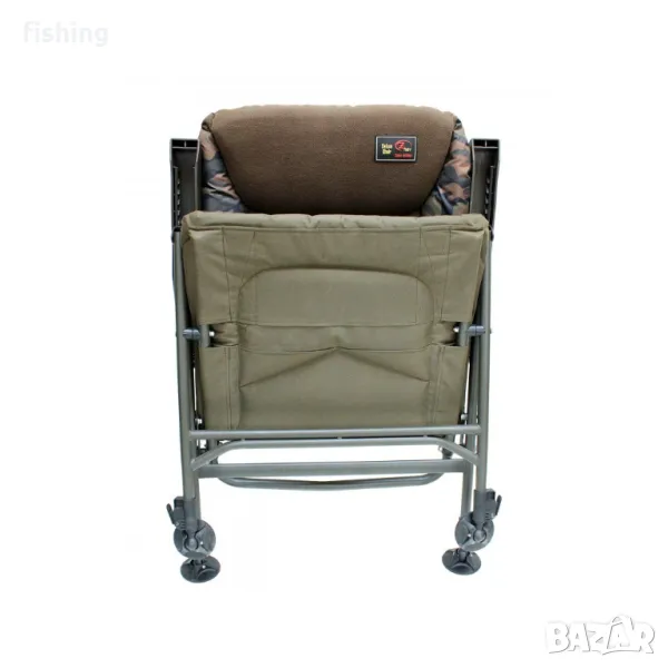 ZFISH представя иновативен Deluxe Camo стол. Използвайки качествени материали, ние постигнахме ниско тегло, като същевременно поддържаме здрава и стабилна конструкция с товароносимост до 150 кг. Добре подплатената седалка и облегалката, изработени от материал от микрофлис, са нещо естествено. Камуфалният кант е изработен от водоустойчив материал Ripstop. Столът се откроява с висока облегалка. Всеки ще оцени регулируемите подлакътници, които позволяват до 8 различни позиции за регулиране на подлакътника. Широките стъпала на краката не им позволяват да се срутят в мек терен, а благодарение на бързите скоби, регулирането на регулируемите крака е лесно. Този стол осигурява максимален комфорт не само на рибарите, но и на всички, които обичат да прекарват времето си седнали удобно сред природата.
