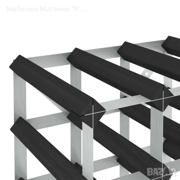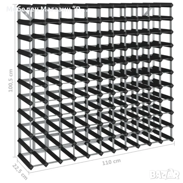 Стойка за вино за 120 бутилки, черна, масивна борова дървесина