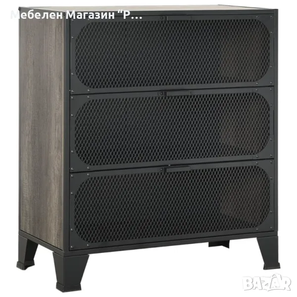 Шкаф за съхранение, сив, 72x36x82 см, метал и МДФ Цвят: Сив