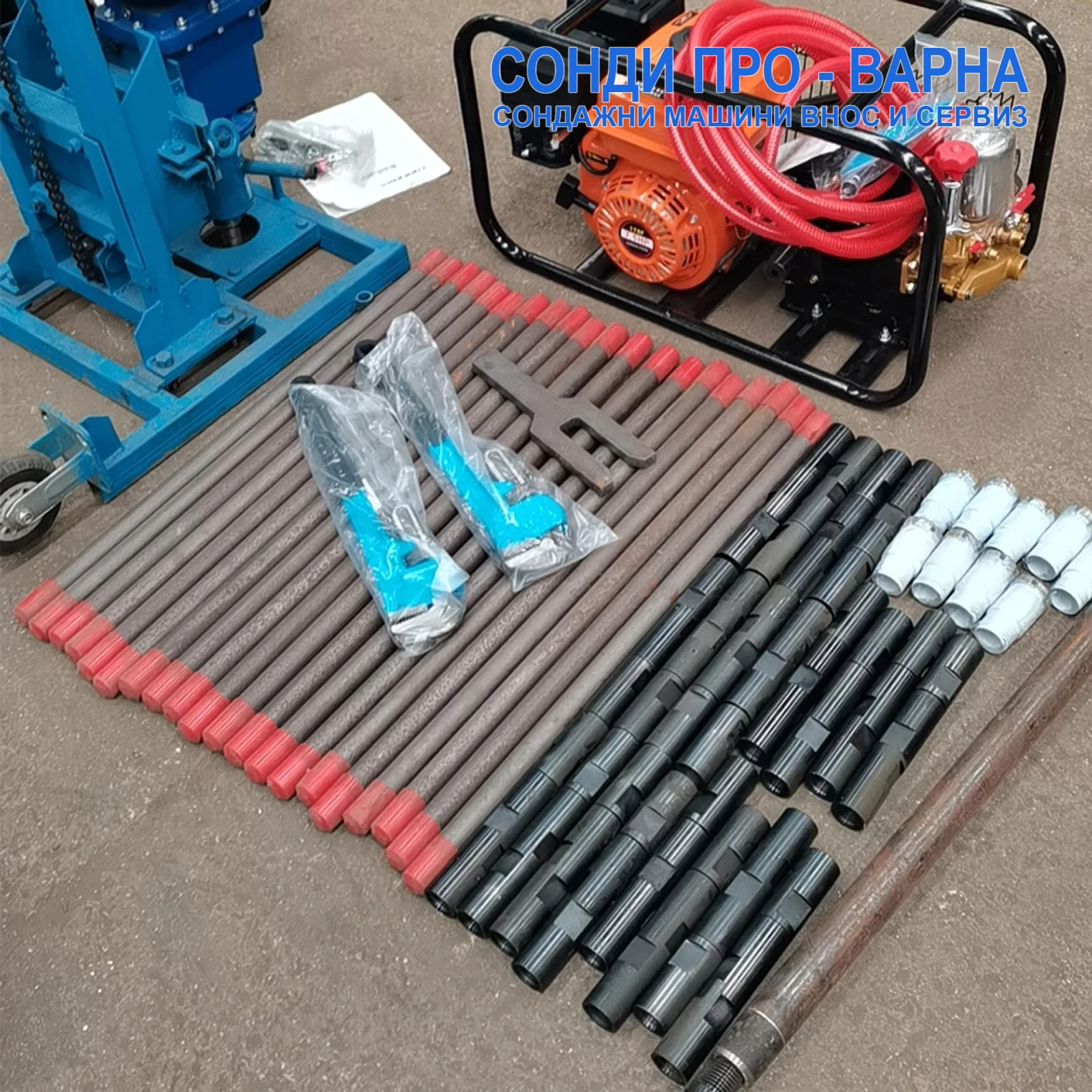 Сондажна машина за ядкови сондажи . ОЦЕНКА НА ПРОИЗВОДИТЕЛНОСТ Водно сондиране: ⭐⭐☆☆☆☆ (подходящо за Ø 80-100 мм до ~25-30 м; ефективно в меки до средни почви; Ø 200 мм силно ограничено; Ø 300 мм практически неприложимо) Въздушно / DTH: ⭐⭐☆☆☆☆ (практично до Ø 60-80 мм; дълбочини до ~15-20 м с мощен външен компресор; Ø 130-150 мм силно ограничено и неикономично) Шнек: ⭐☆☆☆☆☆ (реалистично до Ø 60-80 мм и ~15-25 м в меки, несвързани почви; Ø 150 мм и нагоре силно ограничено) . Цената е с ДДС и гаранция 12 месеца! Производство и доставка по поръчка до 35 дена от Китай с влак. . - За повече яснота и начин на ползване на Мобилна сондажна машина Mobil30GCN, моля заредете видеото на адрес: youtu. be/ueaAlBV4tGY - Други модели сондажни машини предлагани от Сонди Про-Варна, може да видите в mobile. bg: tamper. mobile. bg - Друго предлагано ново индустриално оборудване внос от Европа предлагано от РЕМТЕХСТРОЙ ГРУП може да видите на адрес: www. remtechstroy. eu/bg . ХАРАКТЕРИСТИКА: ЗАДВИЖВАНЕ: БЕНЗИНОВ ДВИГАТЕЛ 7. 9HP с ръчно палене МОБИЛНО ШАСИ ТЕГЛО НА СОНДА: 75 КГ ОБЩО ТЕГЛО С ОБОРУДВАНЕ: 260 КГ . МАКСИМАЛЕН ДИАМЕТЪР НА ПРОБИВАНЕ: 108 ММ (ДО 10 М) МАКСИМАЛЕН ДИАМЕТЪР НА ПРОБИВАНЕ: 75 ММ (ДО 15 М) МАКСИМАЛЕН ДИАМЕТЪР НА ПРОБИВАНЕ: 60 ММ (ДО 20 М) МАКСИМАЛЕН ДИАМЕТЪР НА ПРОБИВАНЕ: 46 ММ (ДО 25-30 М) . МАКСИМАЛНА ДЪЛБОЧИНА НА ПРОБИВАНЕ: 30 МЕТРА (водна промивка) при диаметър 30 мм МАКСИМАЛНА ДЪЛБОЧИНА НА ПРОБИВАНЕ: 10 МЕТРА (сух метод с въздушно сондиране с мощни компресори) МАКСИМАЛНА ДЪЛБОЧИНА НА ПРОБИВАНЕ: 5 МЕТРА (сух метод с шнек) . ВИСОЧИНА НА МАЧТА: 1, 0 М ГАБАРИТ: Дължина=740 х Широчина=530 х Височина=1700 ММ ВОДНА ПОМПА: ДА, 4. 5HP ВОДНА ПРОМИВНА ГЛАВА: ДА ВЪРТЯЩ МОМЕНТ НА ГЛАВАТА: 695 Nm СКОРОСТ НА ВЪРТЕНЕ: 60-150 об/мин СОНДАЖНИ ТРЪБИ ДЪЛЖЕНИ: 1. 0 M СКОРОСТ НА ПРОБИВАНЕ: 0. 5 М/С ДЪЛЖЕНА НА МАЧТА/ХОД: 1000 ММ . БАЗОВИЯТ КОМПЛЕК 30-МЕТРОВ ВКЛЮЧВА: - 30 МЕТРА СОНДАЖНА ТРЪБА с диаметър 30MM x 1000ММ - 1 БР. ВОДНА ПОМПА 4. 5HP - 1 БР. ГАЛВАНИЗИРАНА ДИАМАНТЕНА КОРОНА - 46 ММ - 1 БР. ГАЛВАНИЗИРАНА ДИАМАНТЕНА КОРОНА - 60 ММ - 1 БР. КОРОНА 46 MM ЗА ПРОБИВАНЕ НА ЗЕМЯ - 1 БР. PDC КОРОНА 46 MM ЗА ПРОБИВАНЕ НА СКАЛИ - 1 K-T ИНСТРУМЕНТИ . ТЕХНИЧЕСКИ РЕАЛНИ ПАРАМЕТРИ НА СОНДИРАНЕ МАКСИМАЛЕН ДИАМЕТЪР НА ПРОБИВАНЕ: 50 MМ-130 MМ . ВОДНО СОНДИРАНЕ (WATER FLUSH) Това е основният и най‑ ефективен метод за този модел, особено благодарение на отделната кална помпа, която не натоварва двигателя за въртене и движения. ДИАМЕТЪР НА ОТВОРА - РЕАЛНО ПОСТИЖИМА МАКСИМАЛНА ДЪЛБОЧИНА ≤ 60 мм → ≈ 28 - 32 М 60 - 80 ММ → ≈ 22 - 28 М 80 - 100 ММ → ≈ 15 - 22 М > 100 → ≈ 5 - 15 М *ЗАБЕЛЕЖКА: Направен е реален тест, който отбелязва дълбочина 12 м в скала Ø 80 мм, това е реален показател за твърди условия с този двигател и помпа. Това е близо до долната граница на очакванията за такава мощност и наличие на отделна кална помпа което всъщност помага за поддържане на дебит на вода/кал за доставка на отпадъците от пробива. **ЗАБЕЛЕЖКА: Официално производителя е обявил пределно сондиране до 50 м, но това изисква почви, които лесно се пробиват (пясък, глина, меки варовици, др. ). При по‑ твърди слоеве максималната практична дълбочина намалява. . ВЪЗДУШНО СОНДИРАНЕ (DTH AIR DRILLING, СУХ МЕТОД С МОЩНИ КОМПРЕСОРИ И ПНЕВМОУДАРНИК) Този модел не е специално оборудван за DTH (ударно) сондиране, но може да използва външен пневматичен ударник + компресор. ДИАМЕТЪР НА ОТВОРА - РЕАЛНО ПОСТИЖИМА МАКСИМАЛНА ДЪЛБОЧИНА ≤ 60 мм → ≈ 10 - 18 М 60 - 80 ММ → ≈ 8 - 15 М > 80 мм → ≤ 10 м *ЗАБЕЛЕЖКА: При DTH пробиване за този тип малка маши