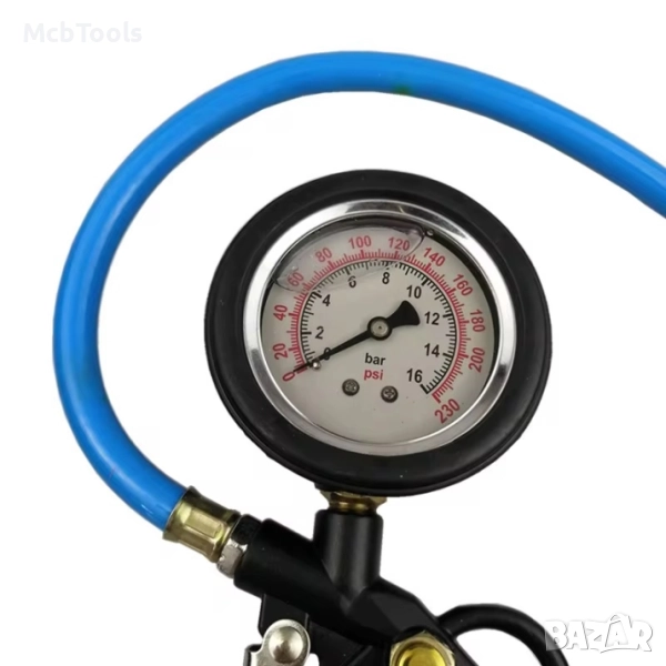 Манометър за помпене на гуми маслен с глицерин за по-добро отчитане на налягането.