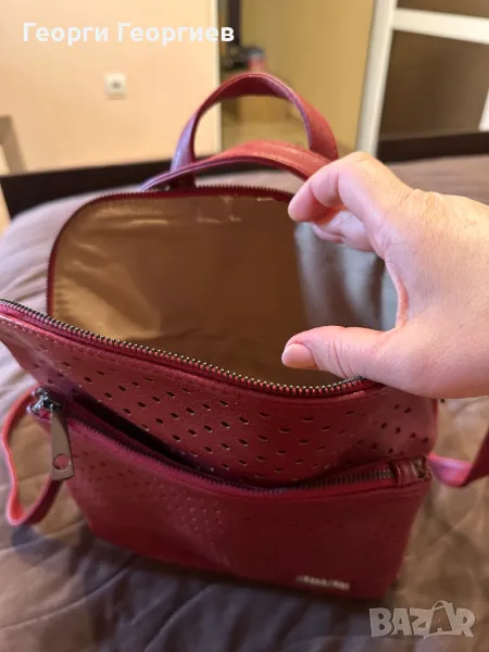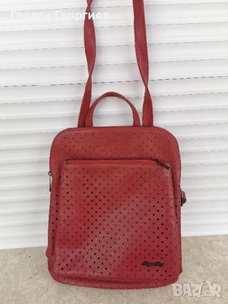 Чантата става хем като раница, хем като манта за през рамо. Изключително красива, купувана за 60 лв., ползвана броени пъти, без забележки.