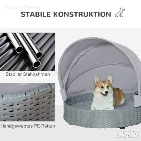 Плетено кучешко легло PawHut Ратанов диван за домашни любимци с регулируем балдахин - 150.00лв.