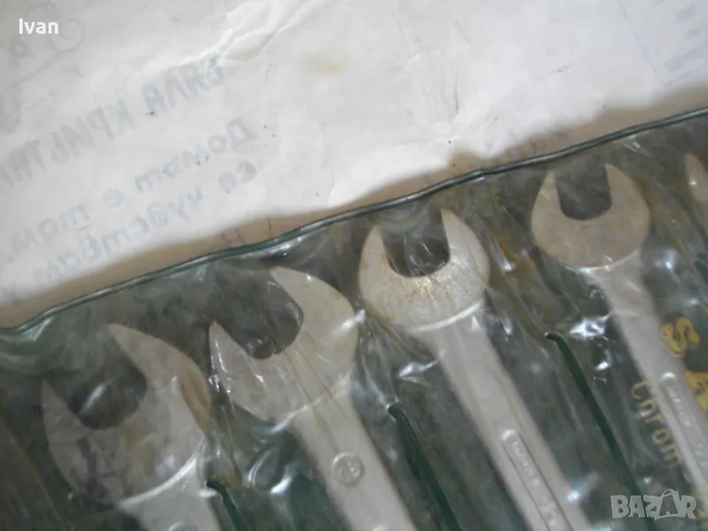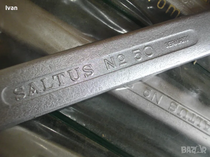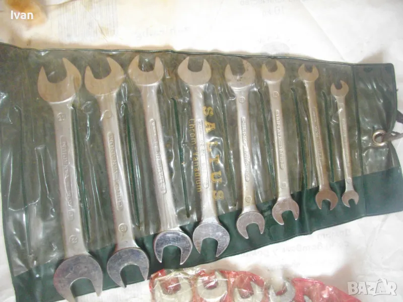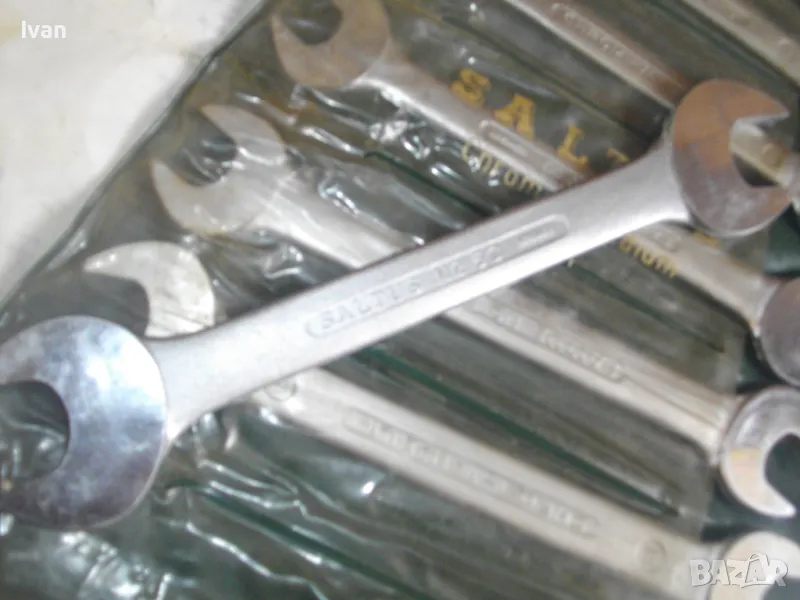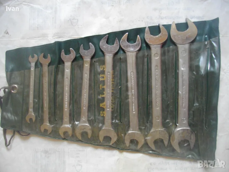 ОПИСАНИЕ на комплект 8 бр. нови професионални гаечни немски ключове SALTUS старо качество - 159 лв. Марка SALTUS. Материал маркиран на инструментите CHROM-VANADIUM. Размери от 6 мм до 22 мм:
