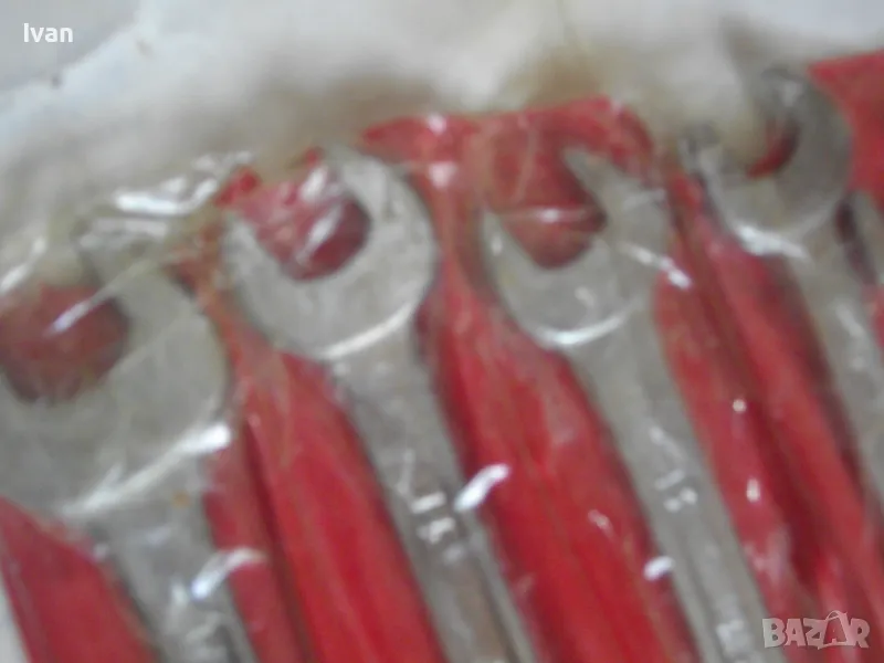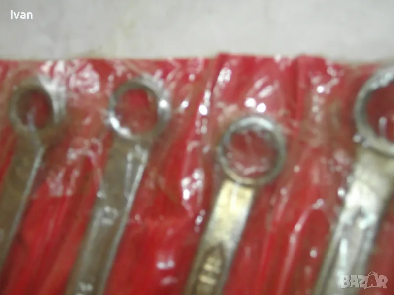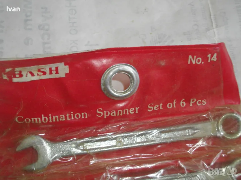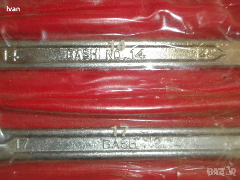 ОПИСАНИЕ на комплект нов звездогаерни ръчни ключове - 6 бр в червен калъф - цена 99 лв. Старо качество. Нови, неупотребявани. Леки разкъсвания по ПВЦ калъфа. Марка и модел на ключовете - BACH №14 Combination Spanner Set of 6 Pcs. Размери на ключовете - 8 мм, 10 мм, 10 мм, 12 мм, 13 мм, 14 мм, 17 мм. Размери на комплекта в разтворено състояни на калъфа - 230 х 230 мм.