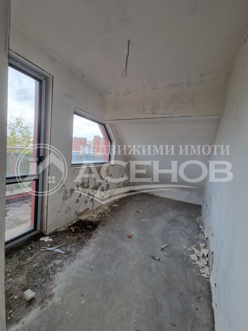 Жилището представлява мезонет на трети и четвърти (последен) етаж, с обща застроена площ от 128,67 кв.м. ниво едно с площ от 75,07кв.м. и ниво две с площ от 53,60 кв.м. Много светъл, с хубава гледка!