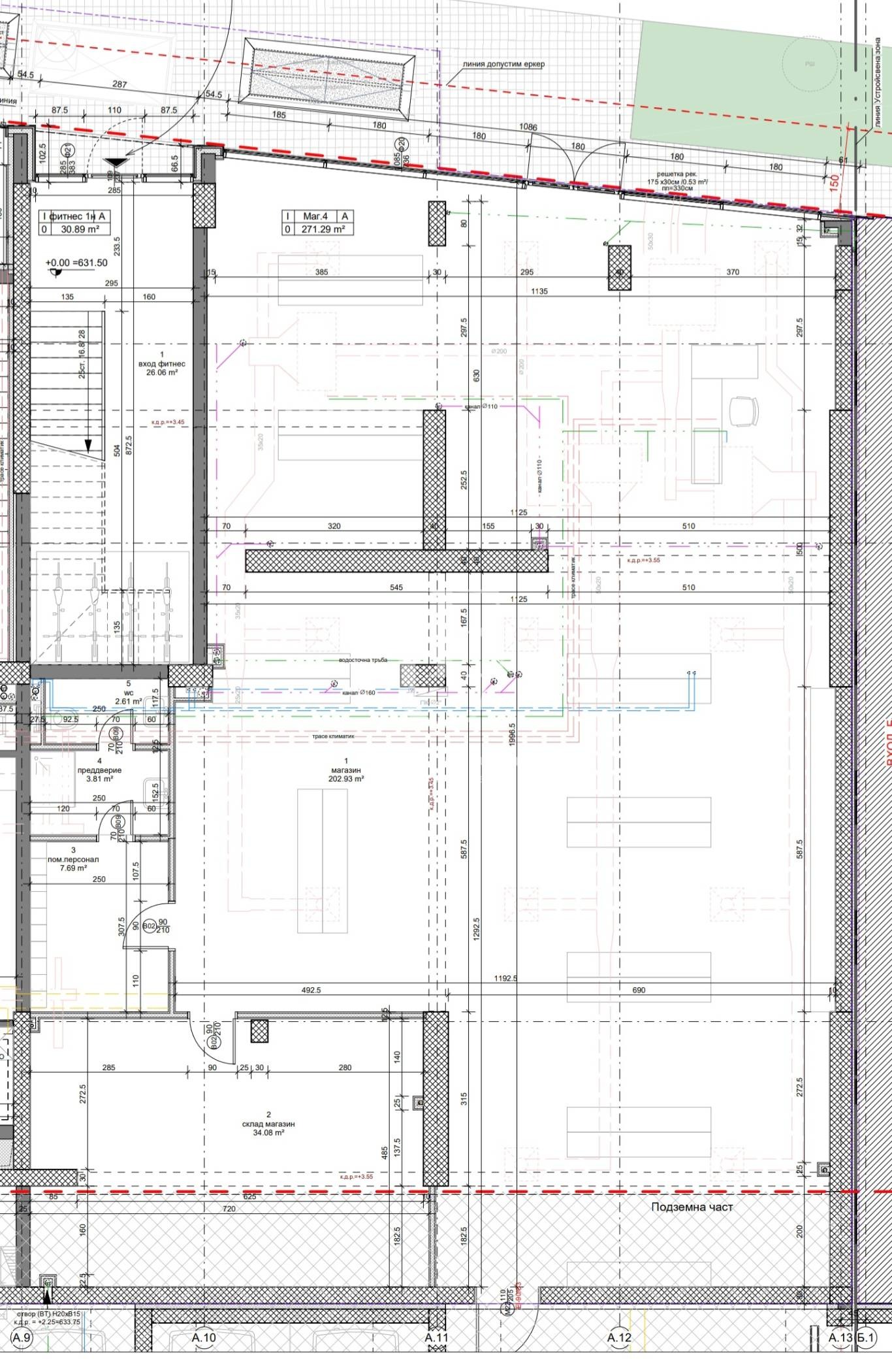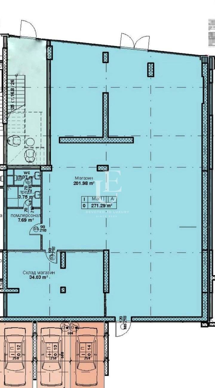 Разпределение: Open space зала, склад, помещение за персонал, санитарен възел.