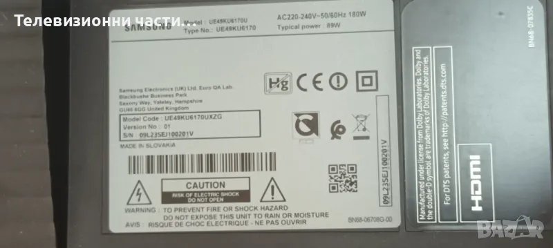Samsung UE49KU6170U със счупен екран CY-WK049HGLV1H/BN41-02528A BN94-10826L/BN44-00807A/V6DU-490DCA-