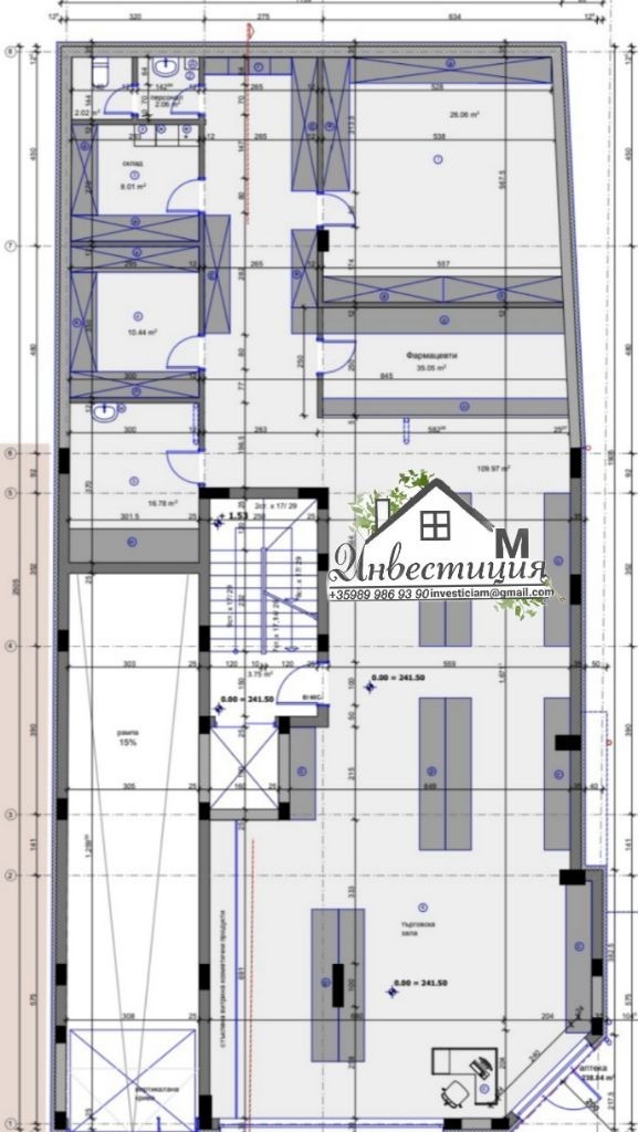 Агенция Инвестиция М, продава търговско помещение в модерна жилищна сграда в предпочитан района на гр. Стара Загора. Имотът е подходящ за магазин, аптека, лаборатория, офис и друг вид търговска дейност. Помещението се намира на партерен етаж с големи стъклени витрини. Наличен е човекопоток. Помещението се състои от: една голяма търговска зала, офиси, склад, санитарен възел. Два входа на имота. Има възможност да се направи разпределение спрямо нуждите на дейността. Издаден е по БДС, и е сградата с модерен дизайн. Топ локация на възлово кръстовище!