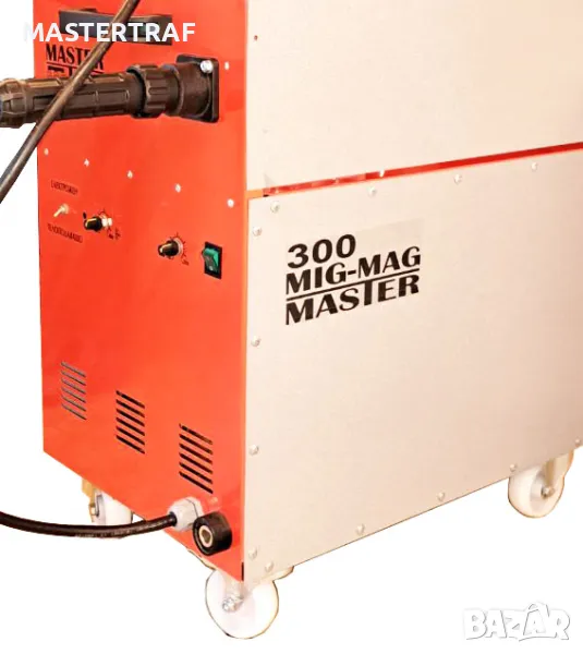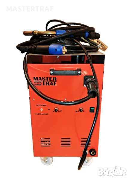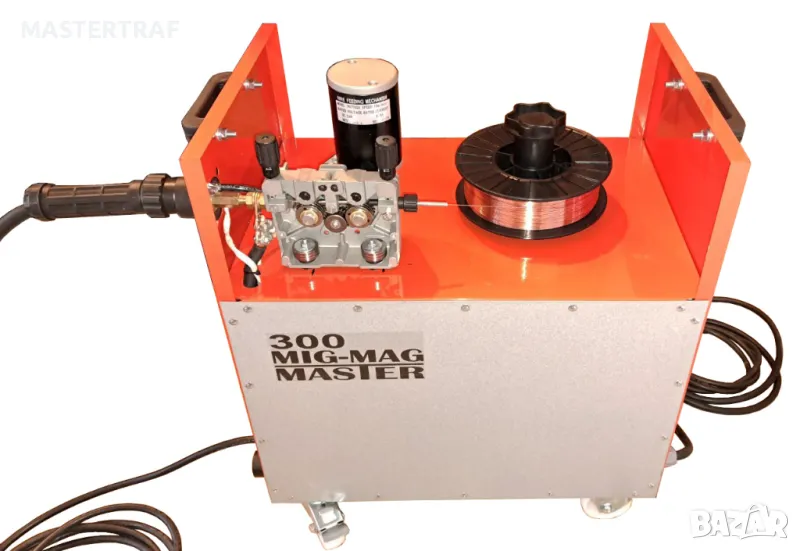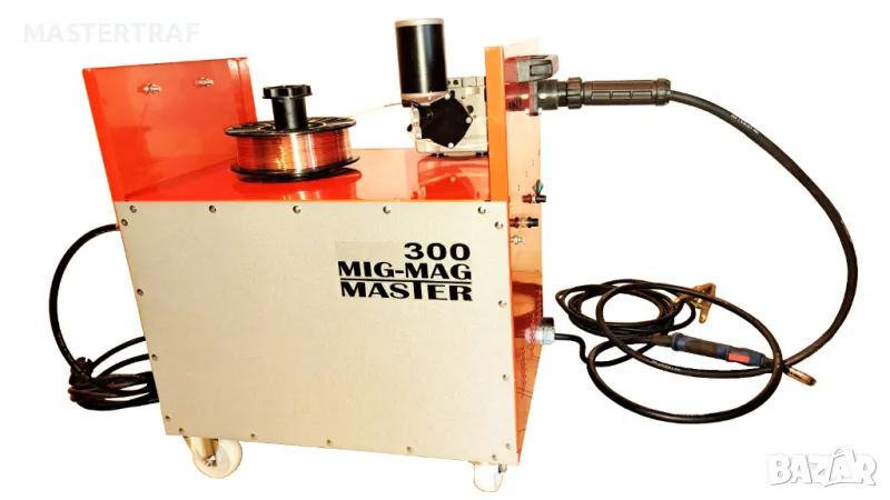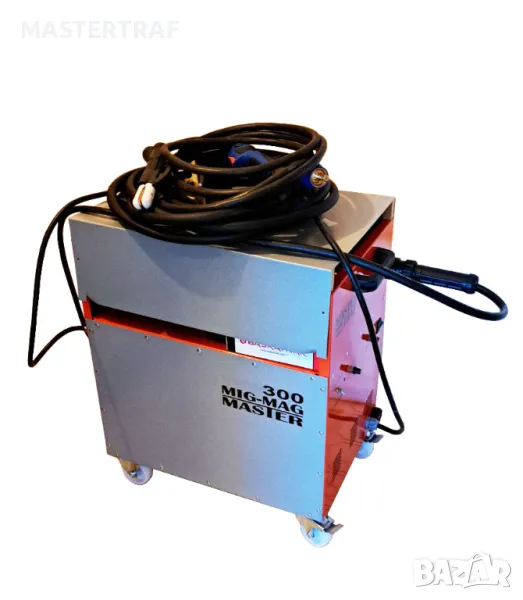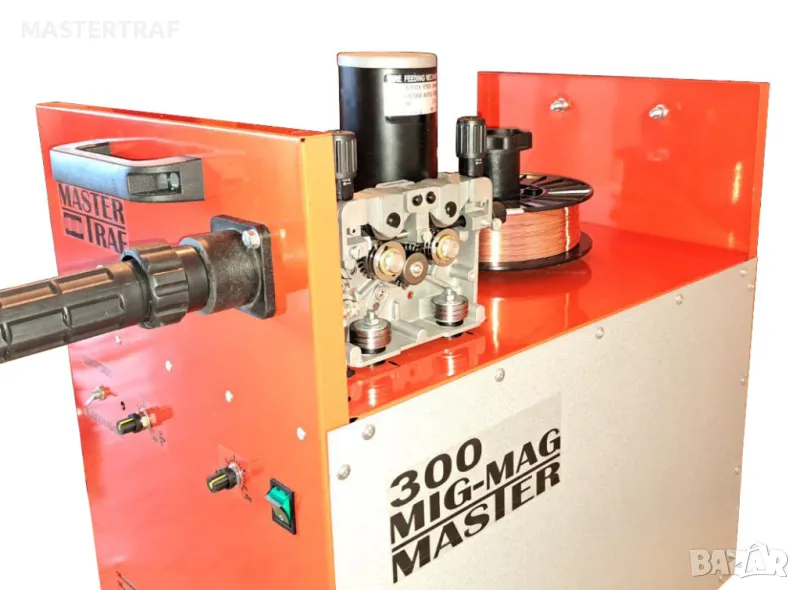 Монофазно трансформаторно телоподаващо устройство 300А с правотоков електрожен. Устройството е предназначено и за професионална употреба. Телоподаващото устройство заварява алуминий, неръждаема стомана, черни метали. Електроженът заварява с всякакви електроди. С възможност и за голяма ролка тел.