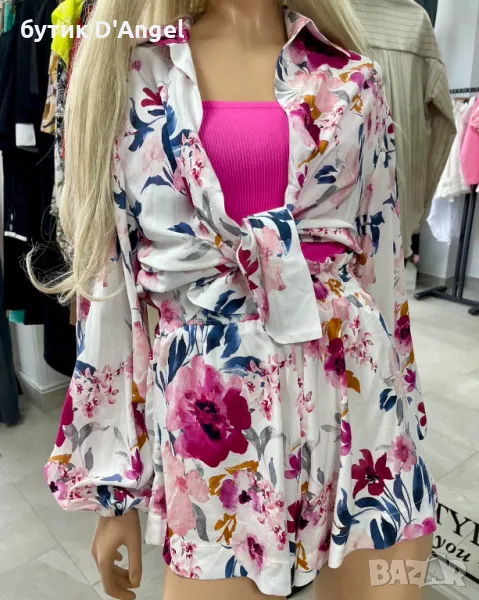 Сет от риза и къси панталонки, изработени от вискоза.