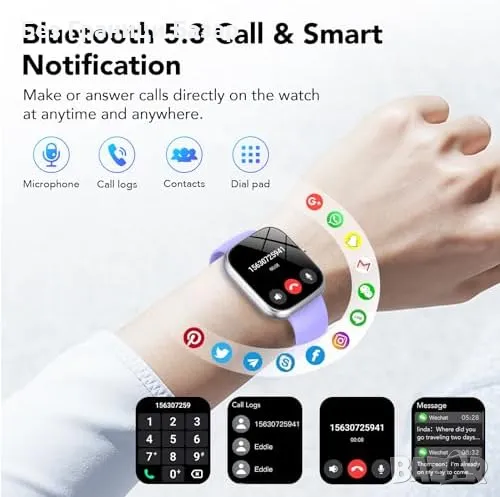 Нов Водоустойчив Смарт Часовник с Над 100 Спортни Режима и Здравен Мониторинг
