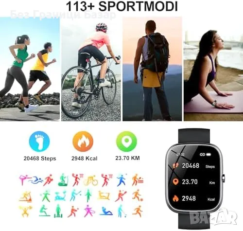 Нов IP68 водоустойчив смарт часовник с 113 спортни режима и Bluetooth обаждания